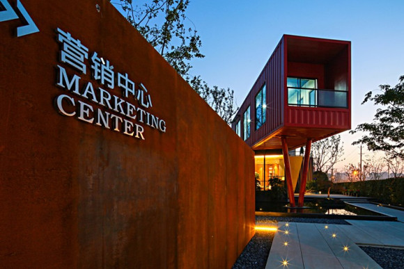 设计简介: 集装箱销售处是模块化建筑的新形势,东原乐见城项目大楼销售处采用集装箱外观设计,严格来说不是原生态集装箱的改造。采用集装箱外观,与普通大楼销售处建筑区别开来。大楼销售处的设计师们通过集装箱模块化的变化组合等多种变化,反复思考修改,整合景观和建筑空间结构的多样性,加上集装箱生动的颜色和绿色环境,给人以广阔的空间感和温暖的气氛。晴天后,我们可以看到大城市。建筑基于整体箱式钢结构,通过组合丰富的组合空间。