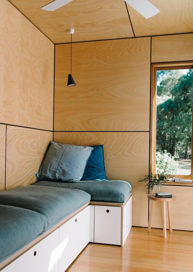 这对夫妇还想让房子融入环境,选择灰色的外部色调,这样就能融入周围的灌木丛中。内部,生态胶合板墙壁、天花板和塔斯马尼亚橡木地板营造出温暖和纹理,与光滑的外部覆层形成对比。